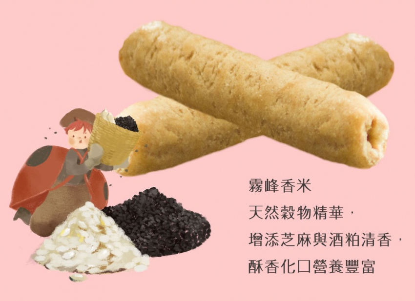 霧峰香米天然穀物精華,增添芝麻與酒粕清香,酥香化口營養豐富。