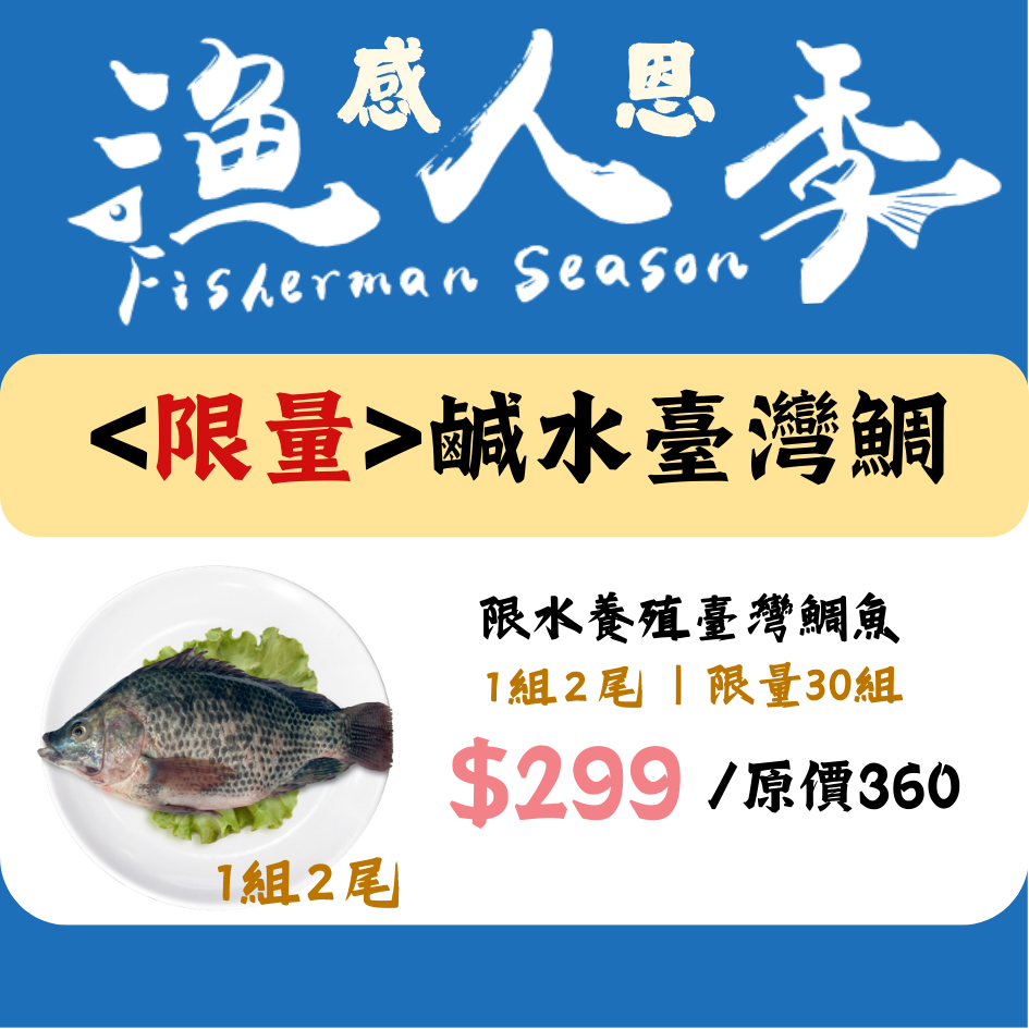漁人感恩季--鹹水臺灣鯛2尾299元